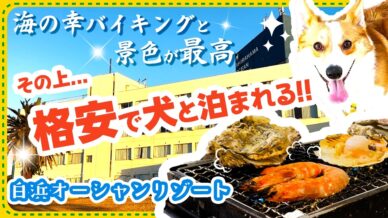 関東の南房総白浜(千葉県館山)にある【白浜オーシャンリゾート】豪華海鮮・浜焼き食べ放題で南房総温泉にも入れ、景色も全室オーシャンビュー!!✨超大型犬まで泊まることもでき、ドッグランもあって犬連れにも優...